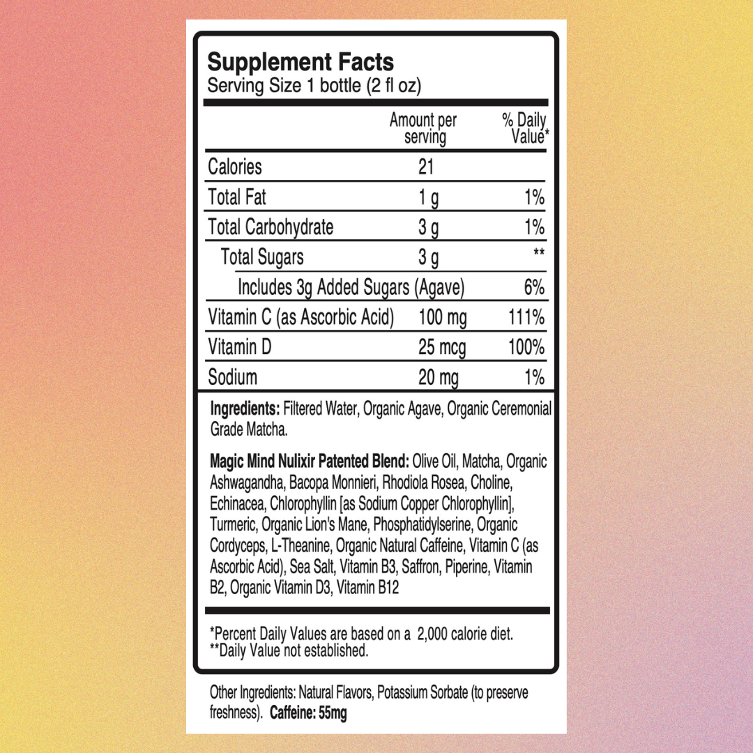 Our Goldilocks formula: a carefully crafted mental performance stack with 12 research-backed magic ingredients, plus 55mg of caffeine for a sharper mind and calm energy.